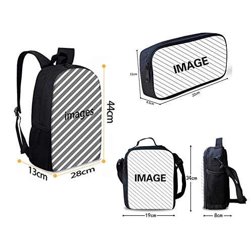 ✏️School Backpack: Material Back: 600D Polyester,Front 100% Polyester;Lunch Bag: Made of polyester material, lining material is EVA + PE cotton; Pen Case: Made of 100% Polyester.Lightweight and portable, polyester, breathable soft back material, with zipper closure style, can be Adjustable shoulder straps. Lightweight and large capacity can hold tablet water bottle umbrella, suitable for travel, office, school, hiking, picnic. mobile phone and office supplies. Suitable for school, home, etc.