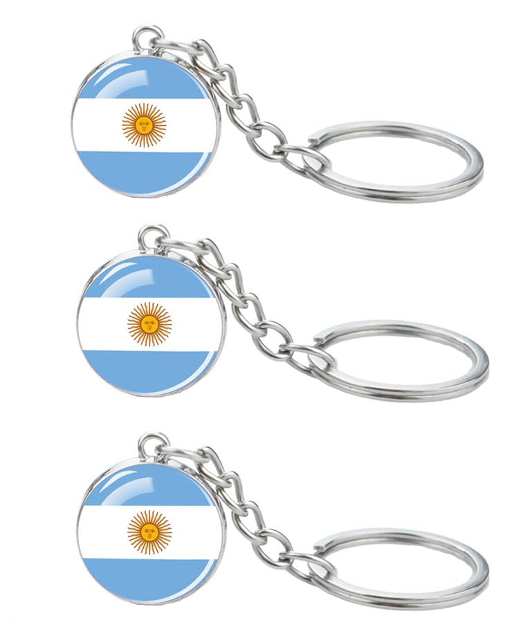 3 Pcs Argentina Flag Key Chain,Cool Keychain for Car Keys, Stainless Steel Keyrings & Keychains,Used for Home Decoration, Jewelry Hanging Decorations.