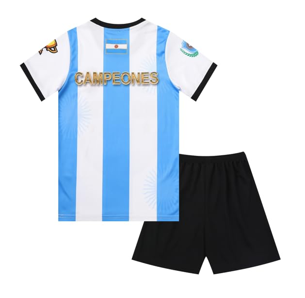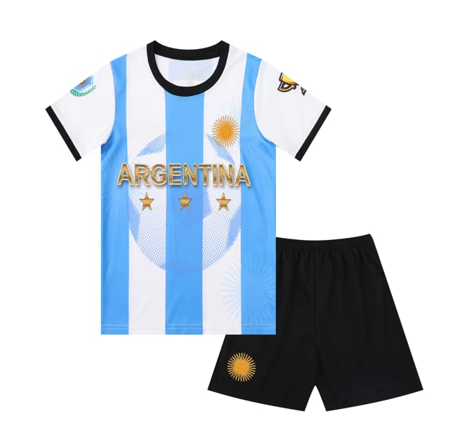 Blue Argentina Kids Boys Youth Sports Soccer Football Kit Jersey Shirt Shorts Set