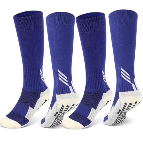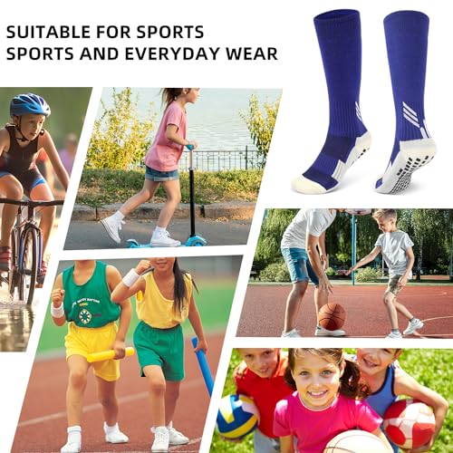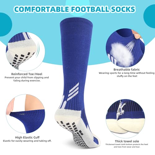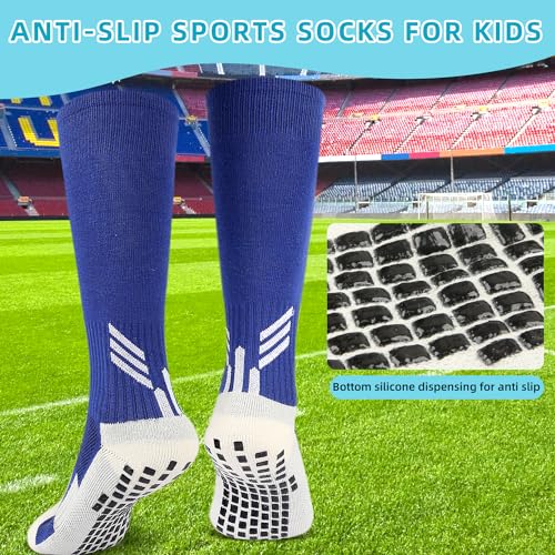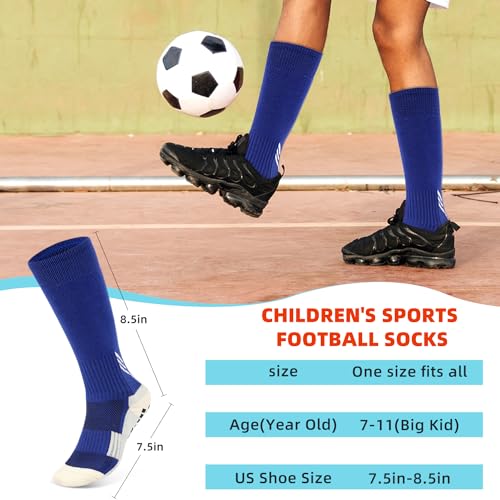 ZEPOHCK 2 Pairs Kids Non Slip Football Knee Length Socks Football/Hockey Grip Socks Suitable For Boys and Girls Aged 6-12