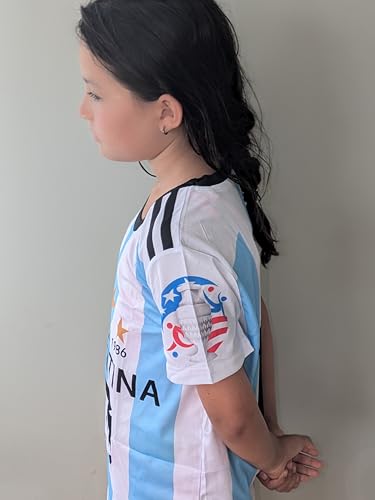 Show your support for Argentina’s football team with our Argentina 3 Star Jersey Football Soccer T-Shirt! This stylish and comfortable t-shirt is perfect for young football fans aged 5-7. Features: Champion Design: This t-shirt features Argentina’s 3-star champion status, a tribute to their triumphant victory. The light blue number 10 is prominently displayed, representing the team’s star player. Comfortable Material: Made from soft, breathable fabric, this t-shirt ensures your child stays cool and comfortable while playing or cheering on their favorite team. Crew Neck & Short Sleeves: The classic crew neck design and short sleeves make this t-shirt a versatile addition to any wardrobe. Cool Printed Design: The cool printed design will make your child feel like part of the team. It’s a great way for them to show their team spirit! Color: This t-shirt comes in a vibrant light blue and white color scheme, reflecting Argentina’s national flag colors. Specifications: Material: Breathable Fabric Size: Suitable for ages 5-7 Color: Light Blue and White Design: 3 Star Champions, Number 10 Package Includes: 1 x Argentina 3 Star Jersey Football Soccer T-Shirt Let your child celebrate Argentina’s championship win in style with this cool, comfortable soccer t-shirt. Order yours today!