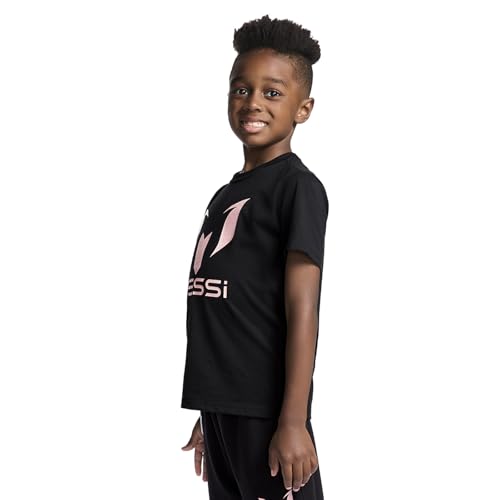Messi Boys’ Lifestyle Short Sleeve T-Shirt, Standard Fit Logo Tee, Cotton Blend Fabric