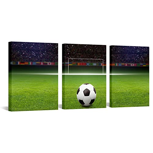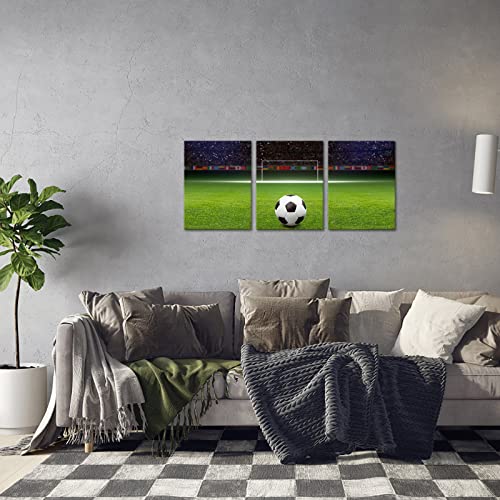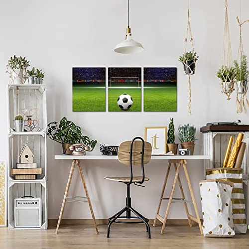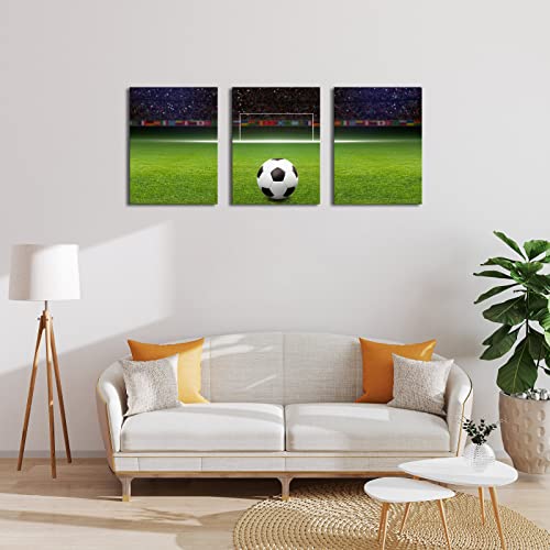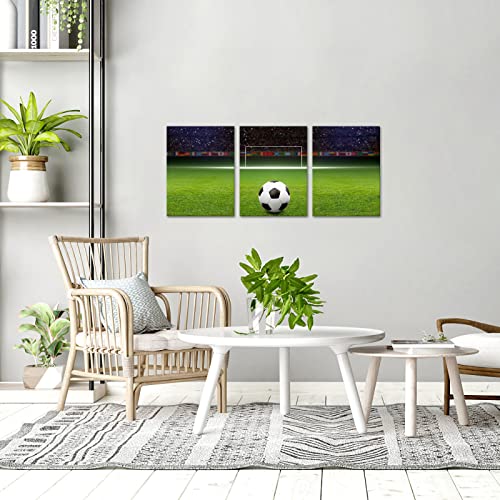 Soccer Decor Football Canvas Wall Art Modern Artwork for Bedroom Living Room and Office Wall Decoration Stretched and Framed Easy to Hang 12”x 16”x 3 Panels