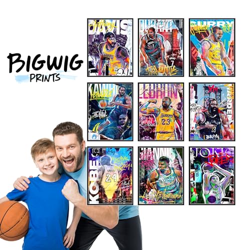 BigWig Prints Basketball Poster Set – Basketball Posters for Boys Bedroom, Basketball Wall Art, NBA Posters for Boys Bedroom, NBA Wall Art, NBA Poster, Kobe Bryant Poster – Unframed Set Of 9 (8×10”)