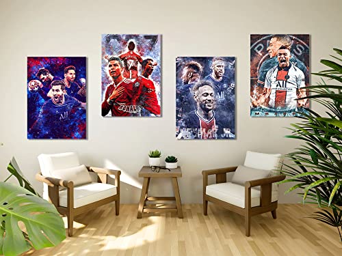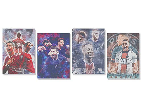 Famous Football Superstar Ronaldo, Messi, Neymar And Mbape Set of 4 Poster Prints Wall Decor Bedroom for Living Room Sport Room Gift for Fan Football Size 11.7×16.5 inch UNFRAMED