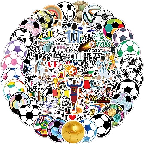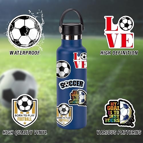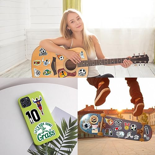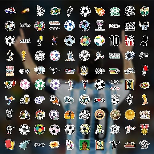 100 Pcs Soccer Stickers for Kids and Adults, Vinyl Waterproof Stickers for Water Bottle Luggage Scrapbook Laptop Stickers, Soccer Party Favors, Soccer Gifts