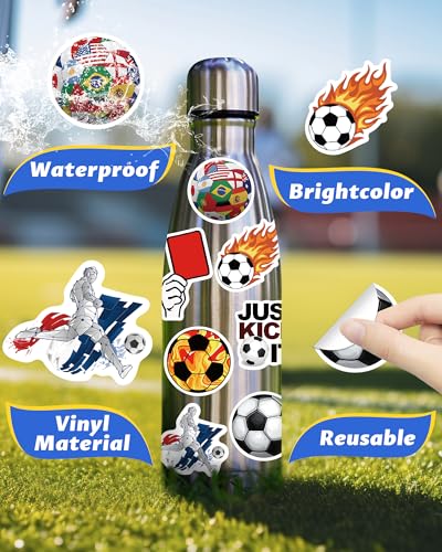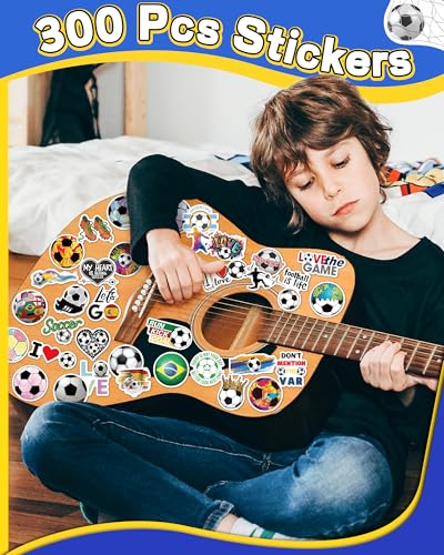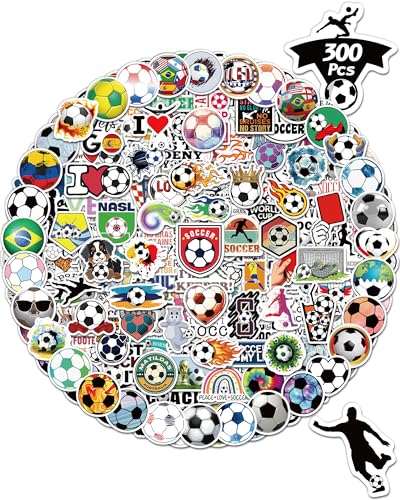300 PCS Soccer Stickers for Kids, Waterproof Water Bottle Stickers Vinyl for Laptop Scrapbook Classroom School Students Prizes Gifts Soccer Party Favors for Kids Teens Boys Adults