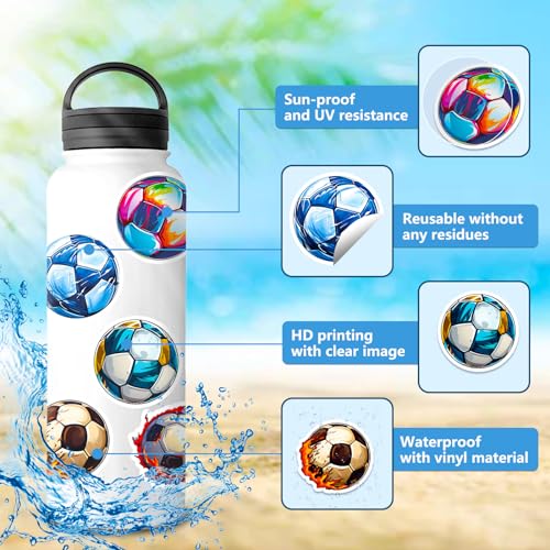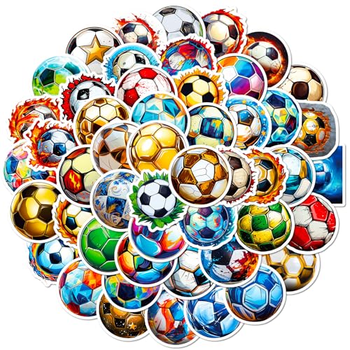50pcs Soccer Stickers,Cool Cartoon Vinyl Waterproof Football Stickers for Water Bottles,Helmets, Luggage, Teaching Incentives, Soccer Gifts for Girls Kids, Teens and Adults (Soccer)