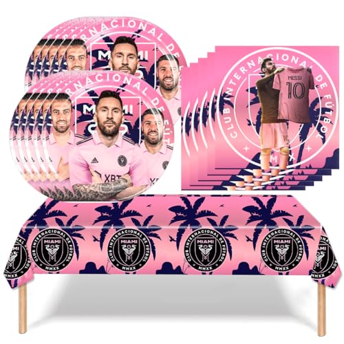 MESSI Birthday Party Supplies, 20 Plates + 20 Napkins + 1 Tablecover Birthday Party Themed Party Supplies Set.