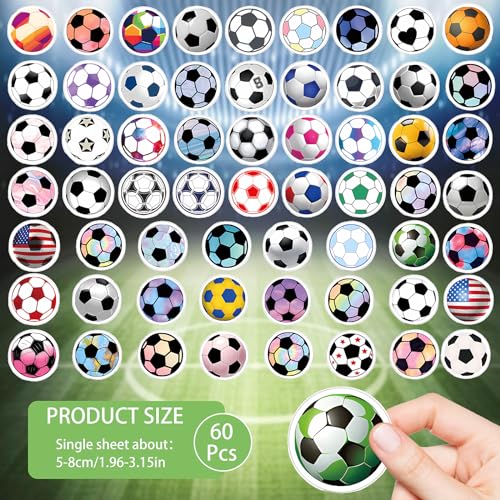 TIESOME 60 Pcs Soccer Stickers, Waterproof Soccer Sports Stickers Soccer Accessories Water Bottles Laptop Car Luggage Mobile Phone Skateboard Decal Decor Perfect Soccer Gifts for Girls and Teenagers