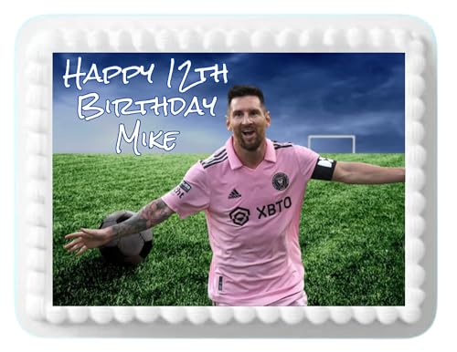 MESSI MIAMI EDIBLE CAKE TOPPER CUSTOM PERSONALIZE 8.5×11 inch BIRTHDAY CAKE