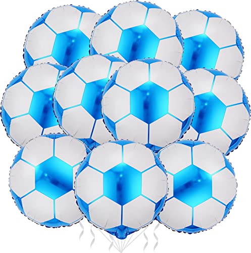 10 Pack 18 Inch Blue Soccer Foil Balloons Football Helium Metallic Mylar Balloons for Birthday Party Sports Theme World Cup Party Decorations