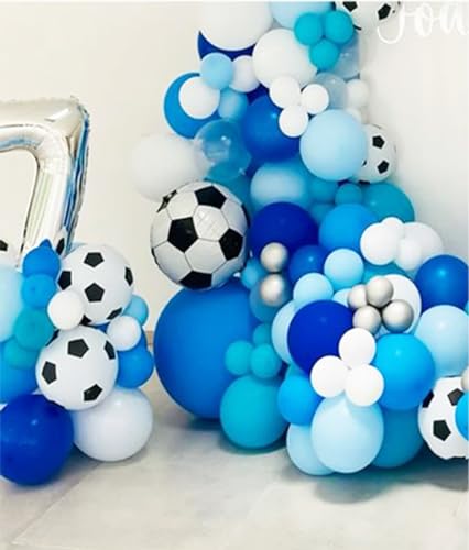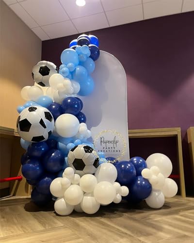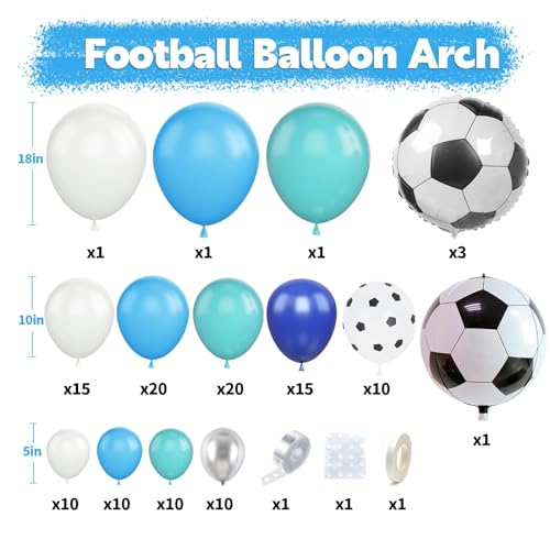 Soccer Balloon Arch Kit, Football Balloon Arch Kit with 4D Football Foil Balloons Royal Blue White Metallic Silver Latex Balloons for Baby Shower Birthday Soccer Football Party Decorations