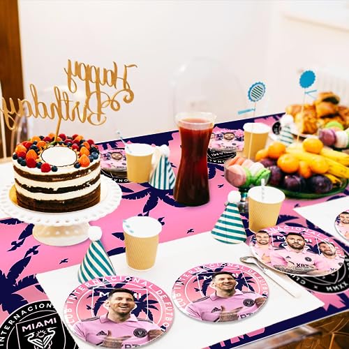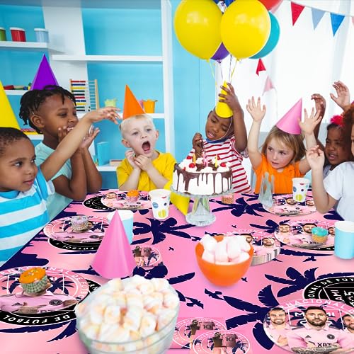 Easy to use: The soccer star party supplies need not diy, you just need to lay the soccer miami party decorations tablecover directly cover the table, Disassemble the soccer miami birthday decorations tableware and use it, no need to waste your time and energy, just enjoy the party with your family or friends