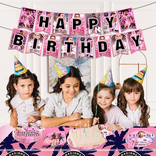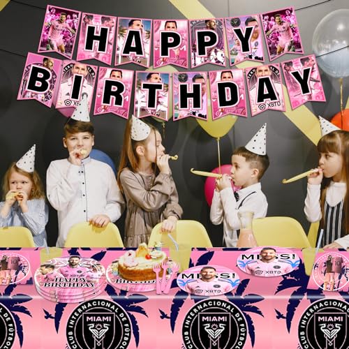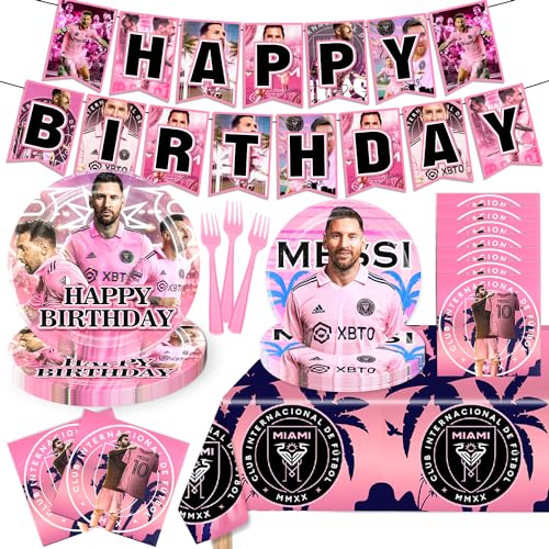 82Pcs Soccer Star Birthday Decorations Tableware Set for 20 Guests HD Soccer Star Party Decorations Soccer Miami Birthday Party Decorations Soccer Star Party Supplies for Miami Theme Birthday Party
