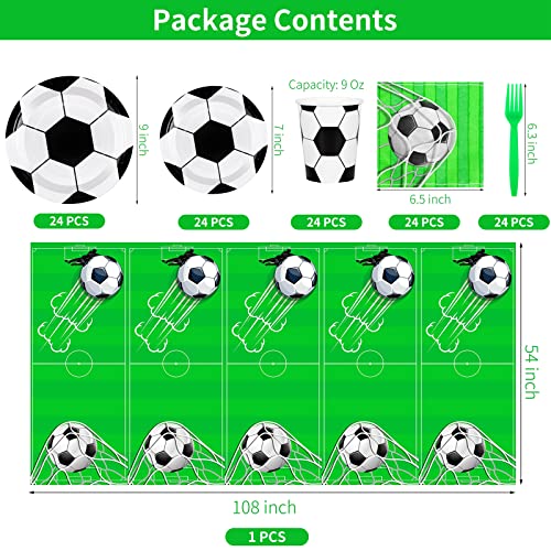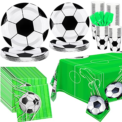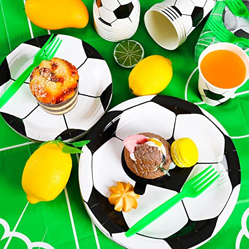 durony 121 Pieces Soccer Party Tableware Set Include Soccer Party Plates and Napkins, Cups, Tablecloth, Forks Soccer Party Supplies for Soccer Party Theme Decoration