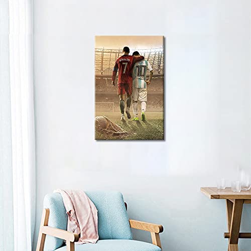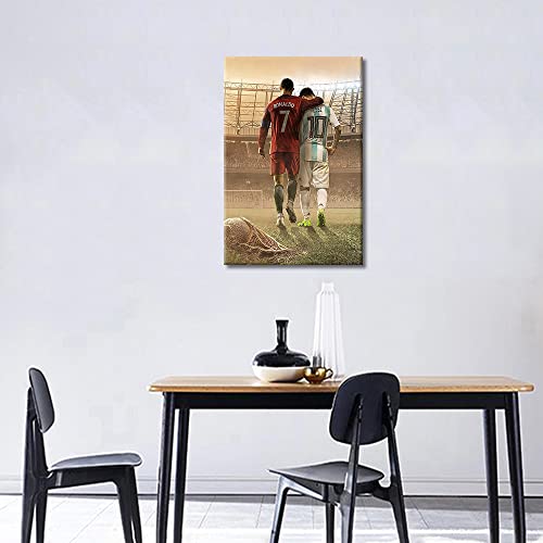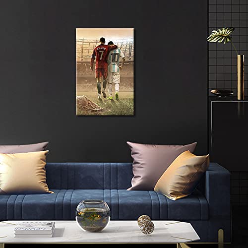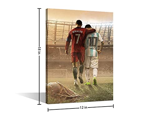 TISHIRON Cristiano Ronaldo and Lionel Messi Poster Framed Canvas Painting Picture Print Board Wall Decor Art Birthday Decorations Motivational Ready to Hang-18 Wx12 H