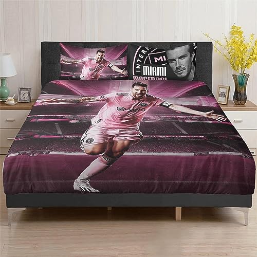 Aimery Miami Bedding Set Soccer Duvet Cover Set Pink Bed Football Comforter Soft Microfiber Soccer Bedding Sets 3 Pieces Fruit Comforter Cover and 2 Pillowcase for Bedroom (Pink 2,Full)