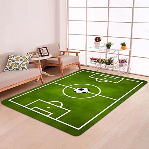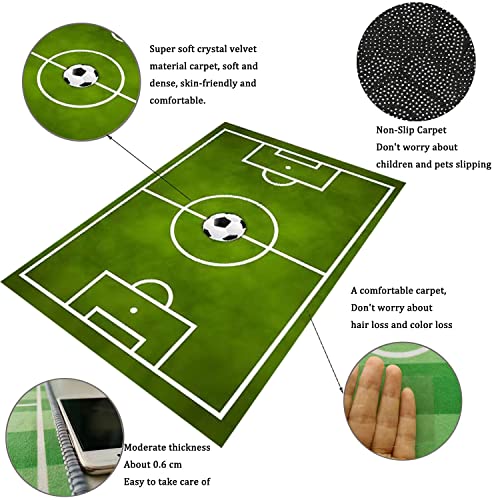 Kids Rug Football Rug Soccer Field Rug Carpet for Boys Bedroom, Playmat Area Rugs for Kids Rooms,Childrens Non-Slip Basketball Rugs for Boys Girls Sports Room,Kids Rug 2.6X4 for Living Room Green