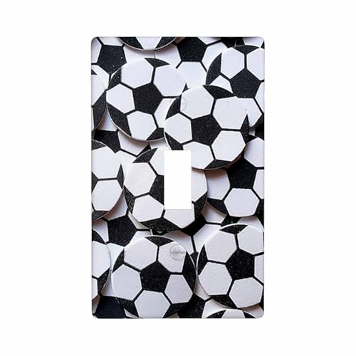 Soccer Ball Figures 1-Gang Toggle Wall Plate Black White Football Shape Light Switch Plug Covers Home Kitchen Bathroom Bedroom Decor
