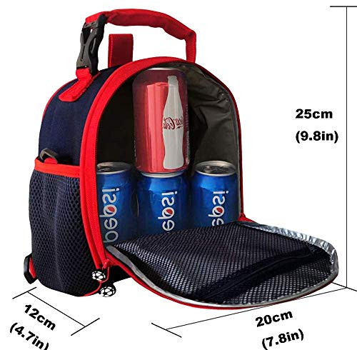 7-mi Kids Lunch Box For Boys Resuable Insulated Thermal Boys Lunch Bags With Shoulder Strap Lunch Box Sandwich Snack 3D Football Lunch Bags For Kids