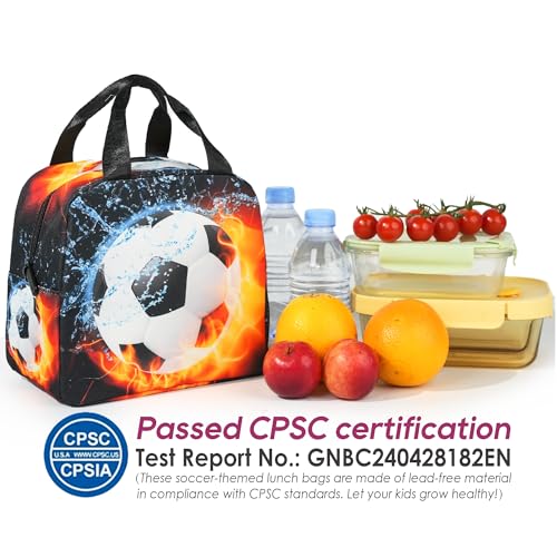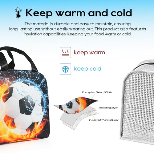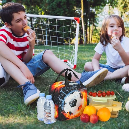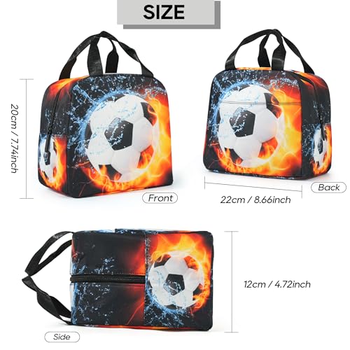 【Suitable Size】Compact yet spacious, this soccer-themed lunch bag is designed to accommodate a variety of items, perfect for outdoor activities and on-the-go lifestyles. With ample space for food and drinks, it’s versatile enough to meet various needs.