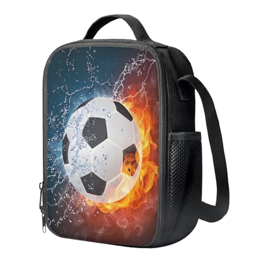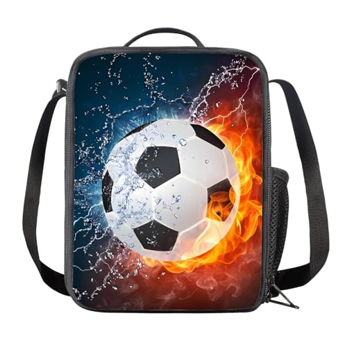 FOR U DESIGNS Football Lunch Box for Boys Kids Lunchbox Soccer Lunch Box for Boys Insulated Lunch Bag Lunch Backpack Reusable Washable Children Lunchbag Thermal Picnic Food Storage Cooler Box