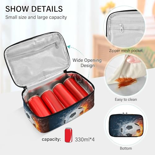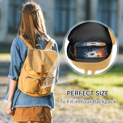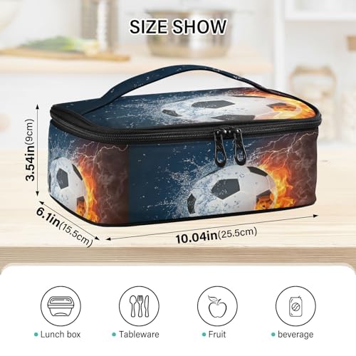Kcldeci Lunch bag, Soccer Ball in Fire and Water Insulated Lunch Bag for Women Men Kids Large Lunch Box Container Reusable Bento Box for Office, Work, School