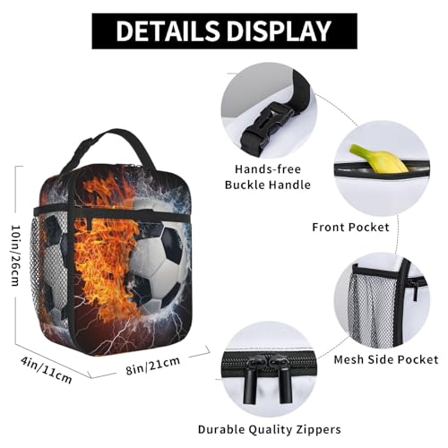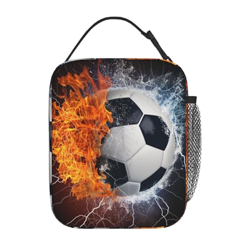 Soccer Ball Sport Lunch Box for Kids Adults Girls Boys Lunch Bag Cooler Tote Reusable Insulated Lunch Bag Container Gifts for Office Picnic Travel Work School