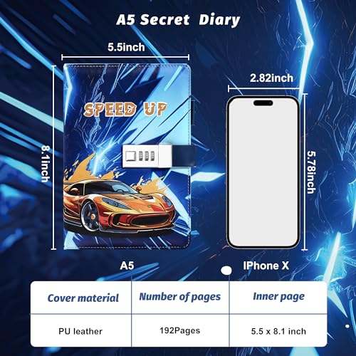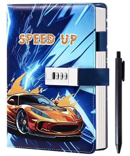 CAGIE Diary with Lock for Teens Who Like Supercar, Gifts for Teen Girls and Boys 12-18 Securely Guard Secrets Journal with Lock, 5.5 x 8.1 Inch Refillable Diary with Pen
