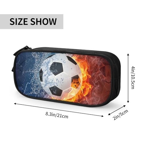 Boys Soccer Pencil Case with Cool Fire & Water Pattern Printed, Portable Pencil Box Pouch with Zipper Sports-Themed Stationery Supplies Pen Bag for Kids Teens for School