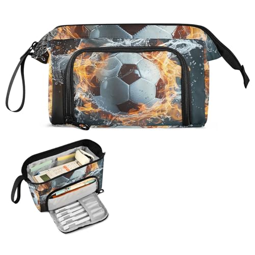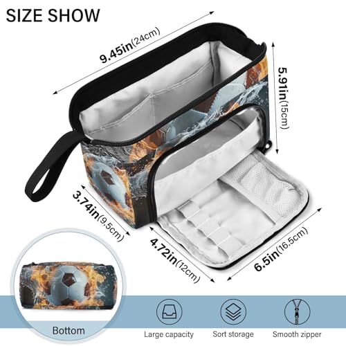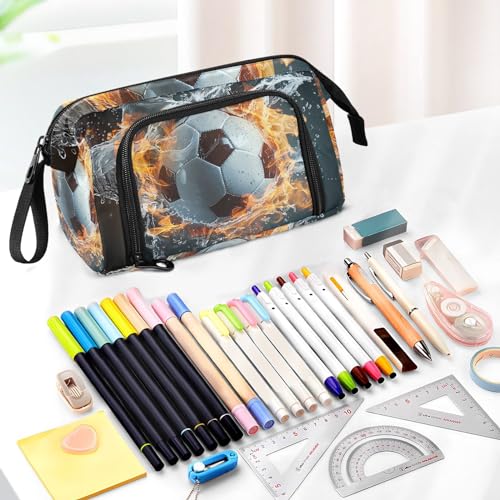 Fire Water Soccer Pencil Case Large Pencil Pouch Big Pencil Box Pen Bag Organizer Pencil Bags with Zipper for Adults Girls Kids Boys School 147