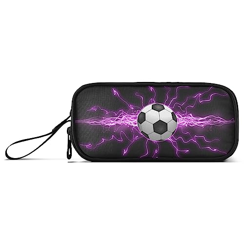 Magic Light Soccer Ball Black Pencil Case Big Capacity for Girl Boy Football Sports Student Pencil bag Pen Pouch Large Stationery 3 Compartments Zippers Organizer School College Office Teens Adults