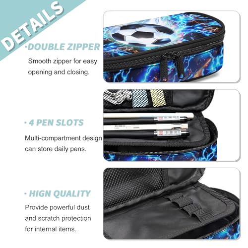 Soccer Pencil Case Large Capacity for Boys Girls Kids, 3 Compartments Multifunction Pencil Box with Zipper, Organizer Pencil Pen Bag Stationery Pouch for School Students