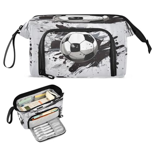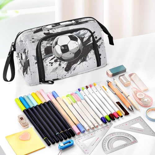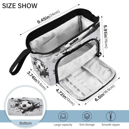 Soccer Pencil Case Pouch Big Capacity Pencil Bag Box Organizer Pen Case with Handle Stationery Organizer for Kids Boys Girls Women College Office