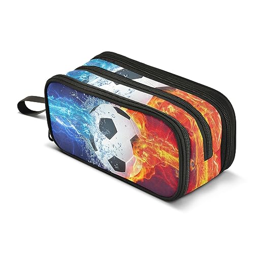 ZAZYXTJ Soccer Ball Large Capacity Pencil Case 3 Compartment Pen Pouch Storage Canvas Makeup Bag for School Office Teen Girl Boy Men Women