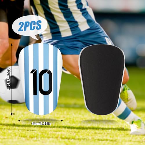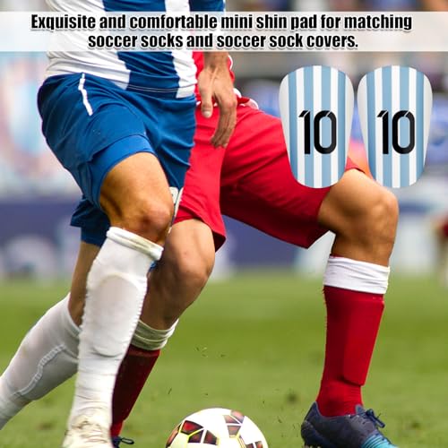 Package Content: You will receive 1 pair of mini shin guards, which are printed with dynamic NO.10 pattern and blue and white stripes. They can be worn with football socks and football sock covers and are perfect for teenagers to play soccer and other sports to prevent bumps and scrapes.