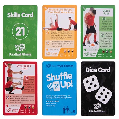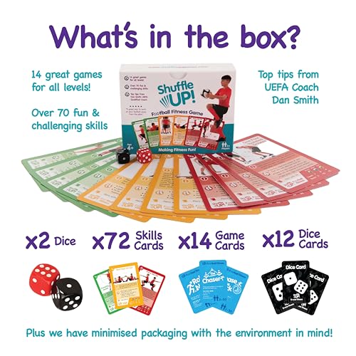 Shuffle Up Soccer Card Games – 70+ Fun & Active Skills Cards for Kids, Fitness Cards Develop Fundamentals, Stamina & Strength, Easy to Play for Kids | Multiple Skills Level Cards Include 2 Dices